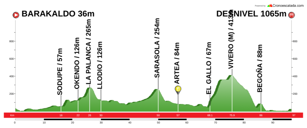 Barakaldo - Güeñes - Humaran - Sopuerta - Las Muñecas (M) - Otañes - Santullan - Subida La Loma - Castro (A) - Mioño - Saltacaballos - El Haya - Kobaron - Pobeña - La Arena - Portu - Barakaldo